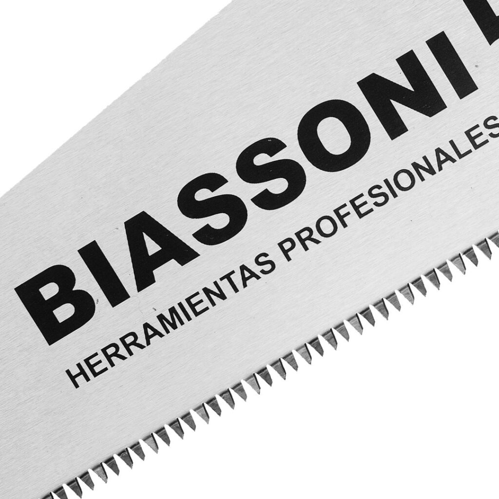 Hoja fabricada con acero aleado de 0,9mm de espesor, el alto contenido de Manganeso brinda una mayor durabilidad del filo. Dientes templados por alta frecuencia y rectificados de precisión.
